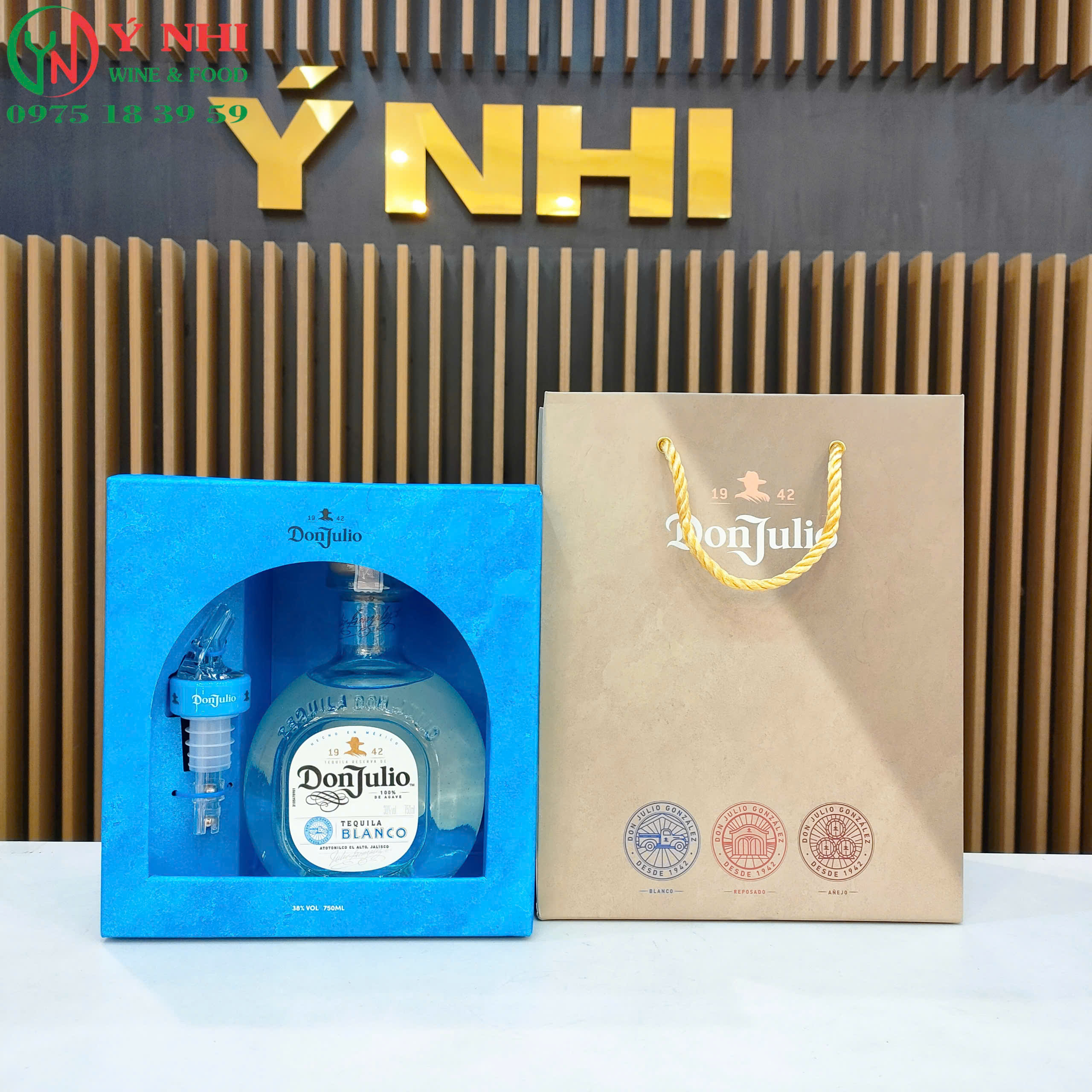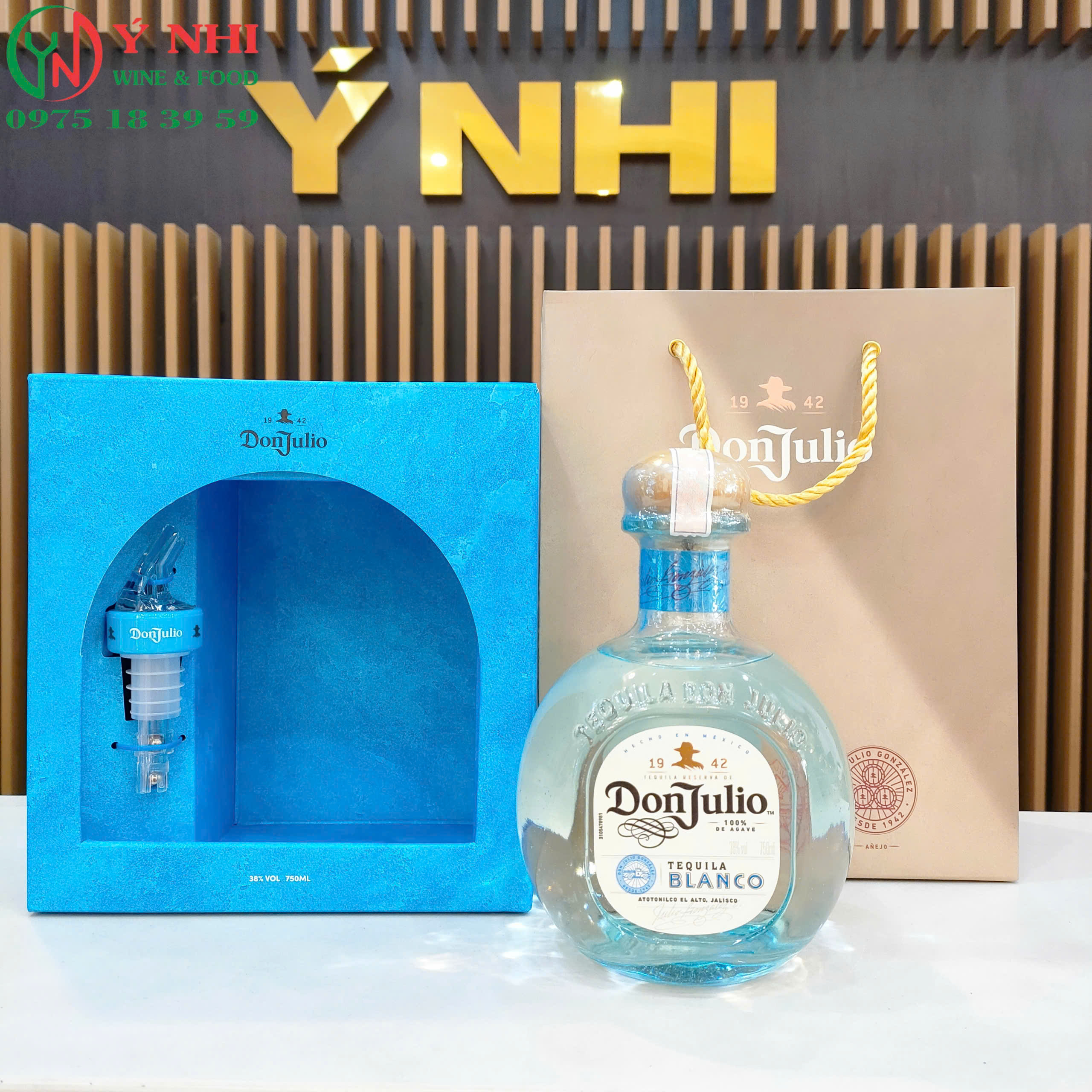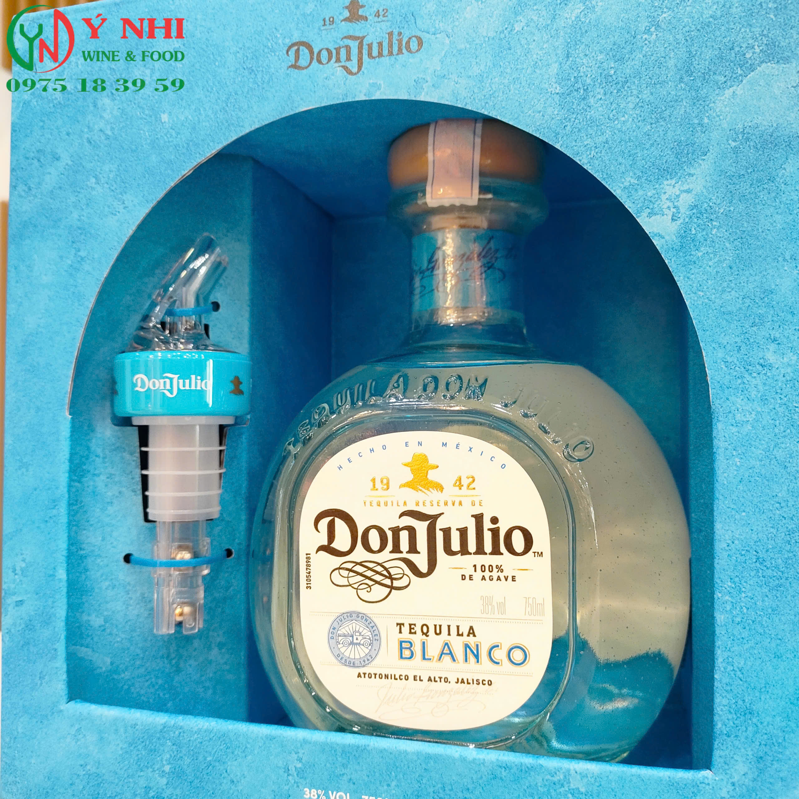 Rượu Tequila Don Julio Blanco – Set hộp quà gồm chai Don Julio Blanco tiêu chuẩn, đầu rót tự ngắt và hộp thiết kế giới hạn cho mùa lễ hội cuối năm và năm mới.